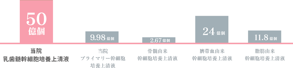 ヒト幹細胞の由来には歯髄、脂肪、骨髄、臍帯血、骨盤など多々ありますが、ゼクサバース東京では歯髄由来の幹細胞を使用しています。歯髄は歯という硬い組織に守られているため、細胞の損傷が極めて小さく、成長因子、サイトカイン、エクソソームなど生理活性物質が多く含まれているのが特徴です。